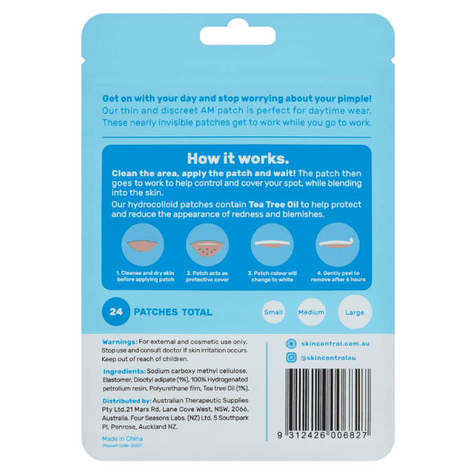 Clear your skin and carry on with confidence. Skin Control AM Pimple Patches use advanced hydrocolloid technology to help cleanse blemishes, absorb whiteheads and protect spots from dirt while you get on with your day.